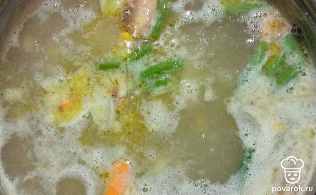 Куриный суп с фасолью и картофелем нежное и очень вкусное блюдо. Содержит в себе много полезных свойств. Мясо куриного бедра не самое диетическое, но оно также очень полезно, оно содержит: витамины A, B1, B2, B6, C, E, а также калий, цинк, железо, фосфор и натрий, легкоусвояемый белок, аминокислоты. Стручковая фасоль — хороший способ предотвратить сердечные приступы. Кроме того, стручковая фасоль является прекрасным мочегонным средством, она выводит из организма лишние соли.