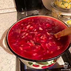 Данный рецепт увидела на просторах интернета. Это блюдо привлекло меня тем, что не требует много времени на приготовление, поскольку варится с добавлением готовой заправки для борща.