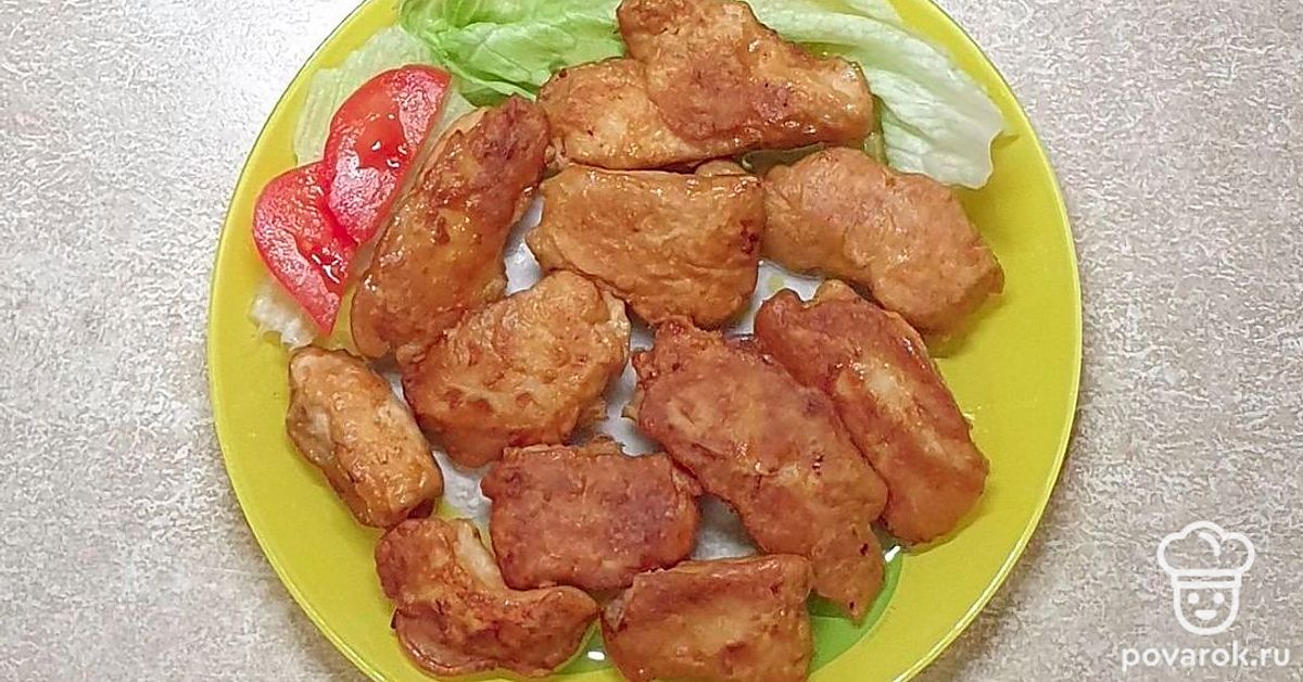 На разогретую с растительным маслом сковороду выложите каждый кусочек курицы. Обжаривайте на среднем огне до золотистого цвета с каждой стороны (около 10 минут).