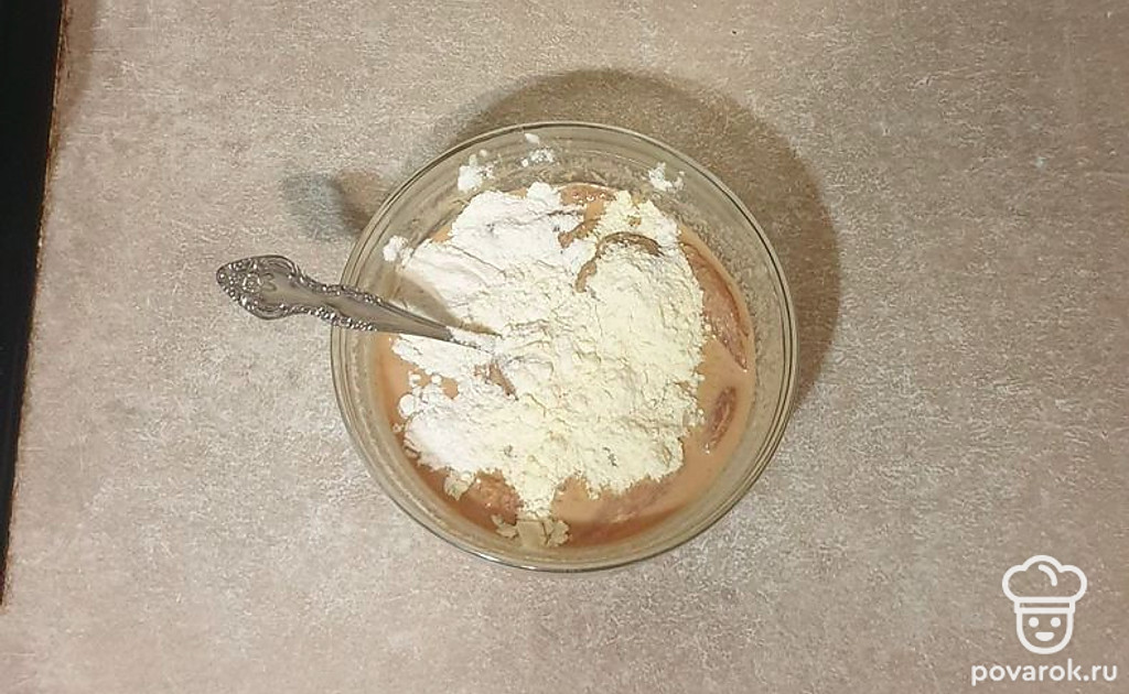 К курице всыпьте муку и еще раз перемешайте.
