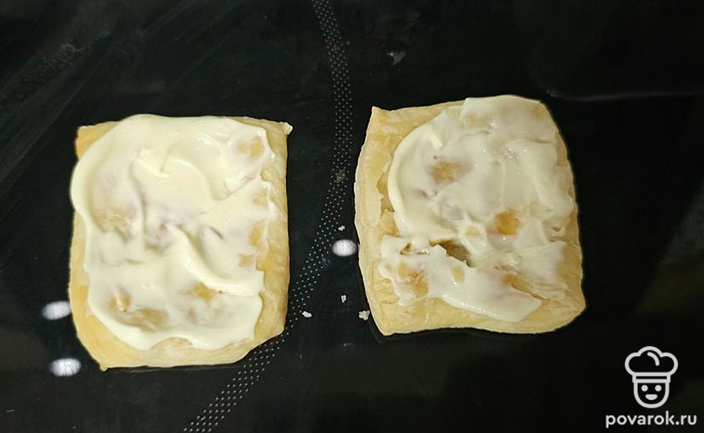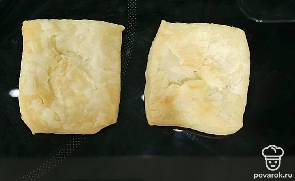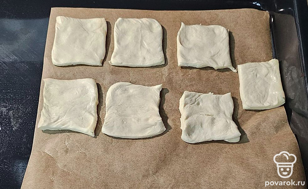 Нарежьте тесто на квадратики. Выпекайте при 180 градусах 15 минут.