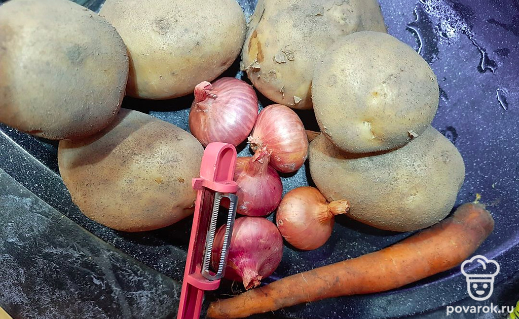 Помойте и очистите овощи.