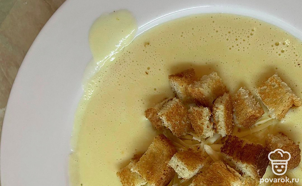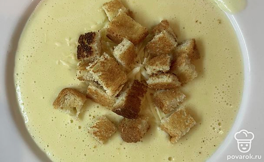 Разлейте по тарелкам. Сверху посыпьте сыром и сухариками.