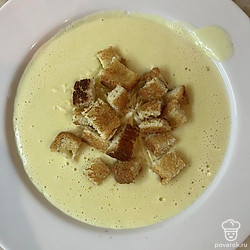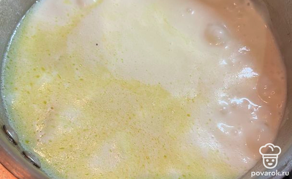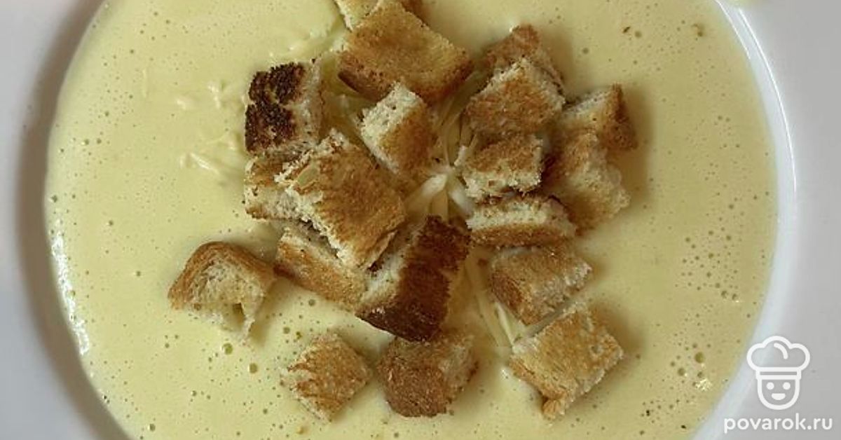 Добавьте в кастрюлю картофель, залейте водой, доведите до кипения и варите 20 минут. Сливки разогрейте в микроволновке и влейте в кастрюлю, положите плавленый сыр.