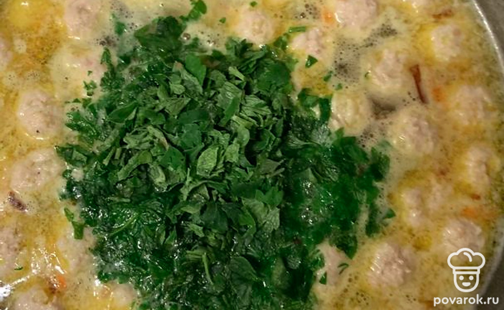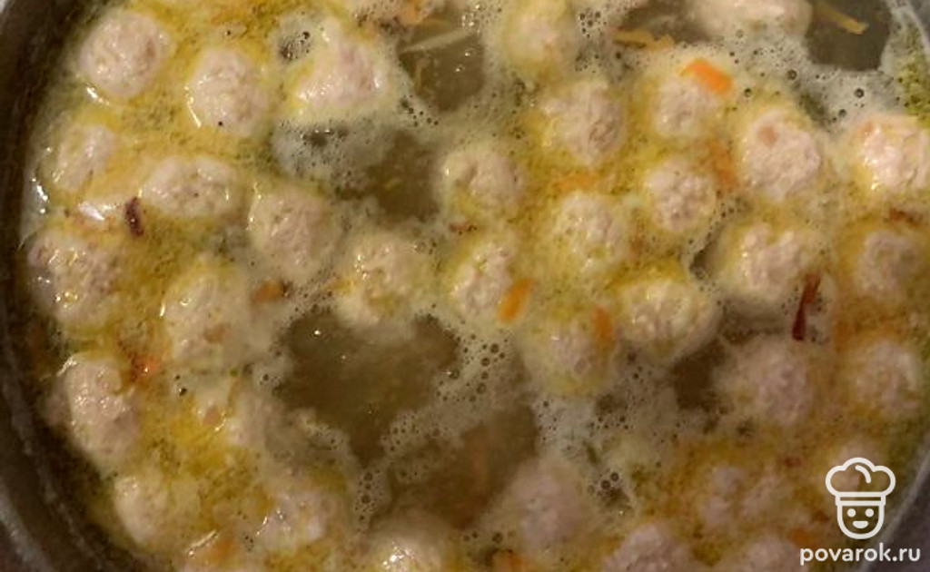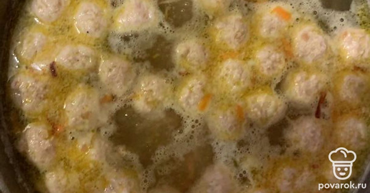 Из фарша слепите шарики, добавьте в суп и варите до готовности.
