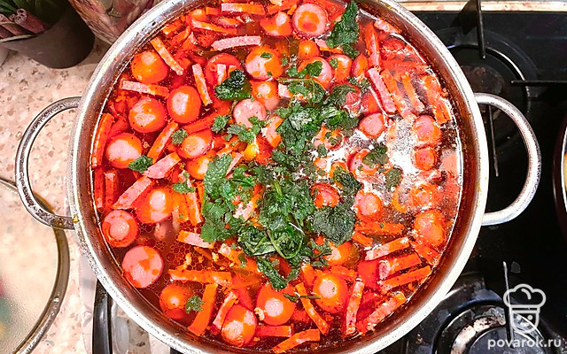 Моно использовать сосиски, ветчину, колбасу — то, что вам больше нравится.