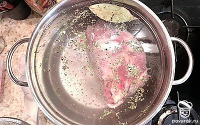 Приготовьте бульон, добавив любимые специи и лавровый лист.