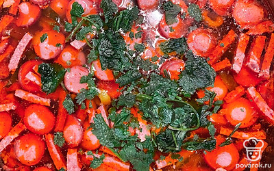 Всыпьте нарезанные маслины и варите ещё 5 минут.