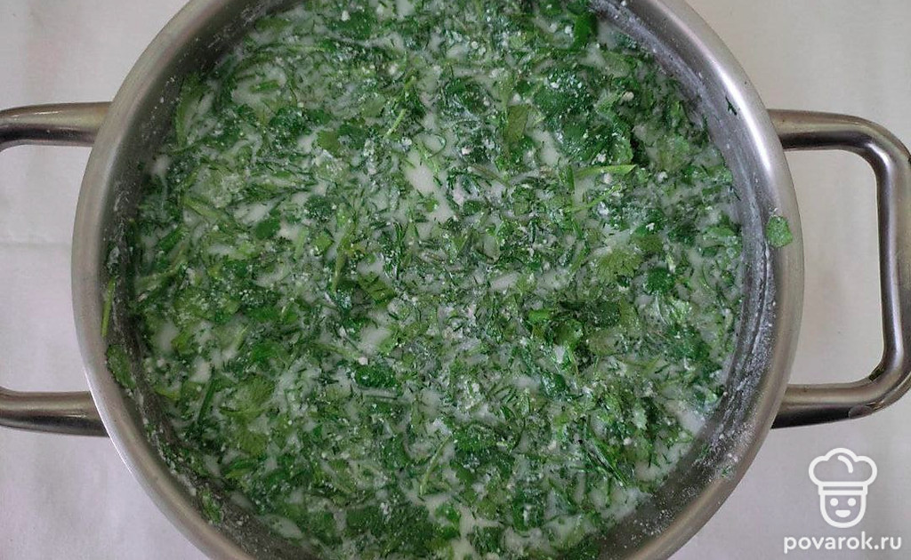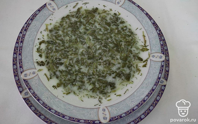 Для того чтобы сделать полезней азербайджанский суп довга с кефиром и зеленью, возьмите кефир с минимальным процентом жирности.