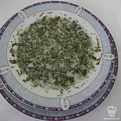 Мелко нашинкуйте укроп и кинзу. Яйцо слегка взбейте вилкой в мисочке.