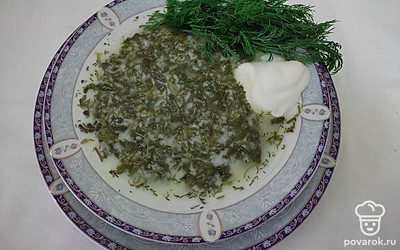 Подавать азербайджанскую довгу с кефиром и зеленью можно как в горячем, так и в холодном виде. Украсьте это первое блюдо веточками свежей зелени и ложечкой сметаны.