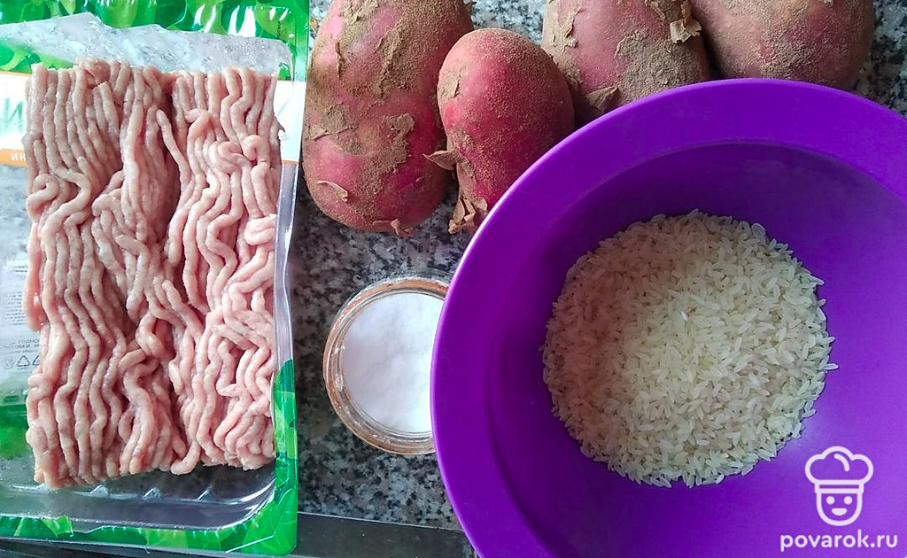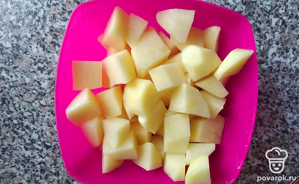 Рис промываем, картошку нарезаем кубиками. Добавляем в кипящую воду рис, затем картошку.