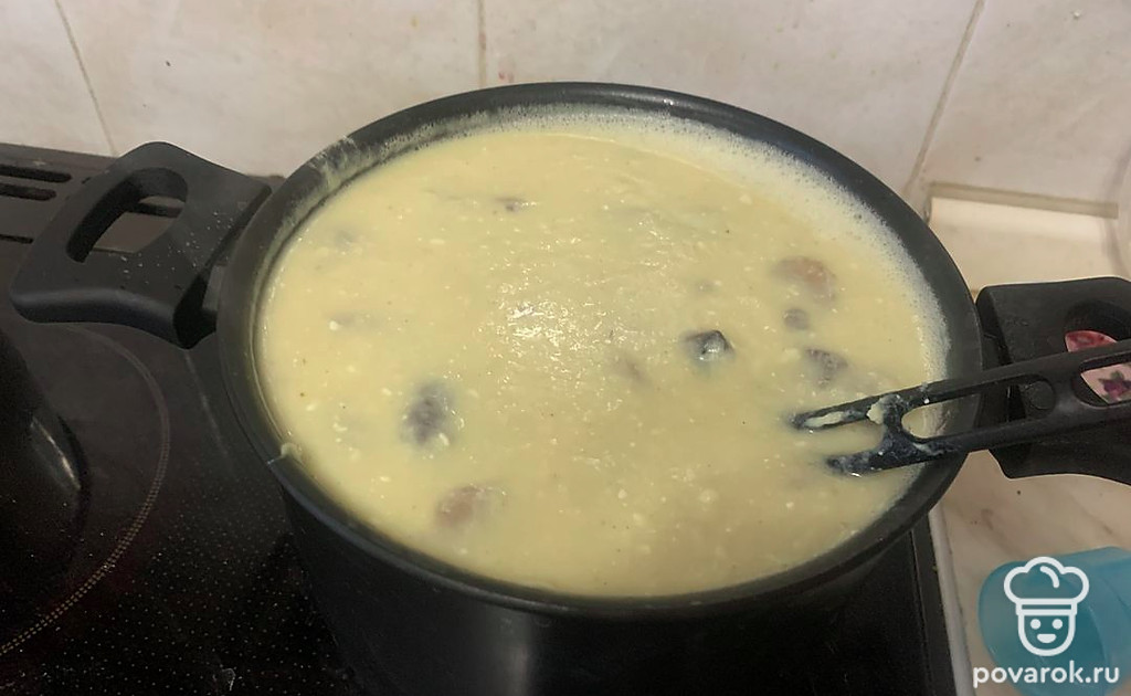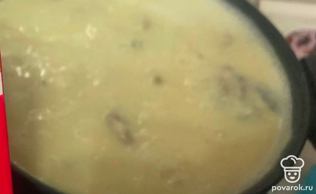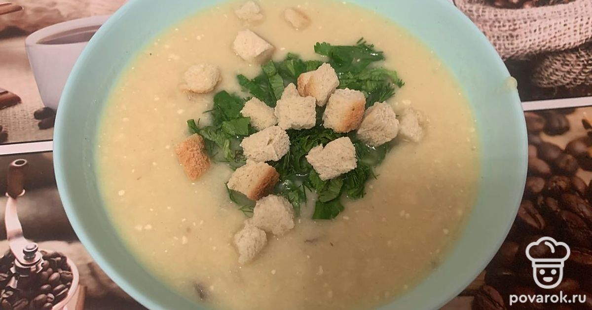 Добавляем картофель и обжаренный лук в готовый бульон, варим до готовности, добавляем соль, перец по вкусу, растворяем в небольшом количестве бульона плавленый сыр и добавляем в суп. Пробиваем все погружным блендером и добавляем нарезанные шампиньоны из банки.