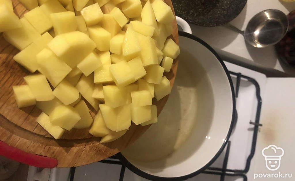 Опустите картофель в кипящую воду.