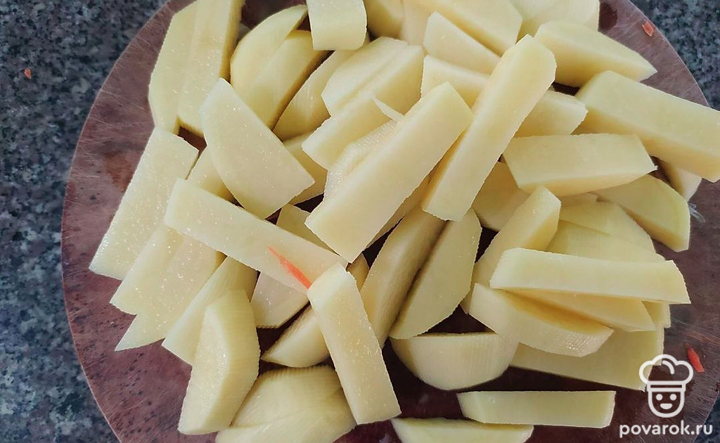 Картофель очистить и нарезать брусочками.