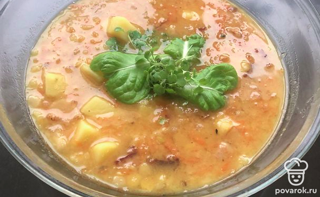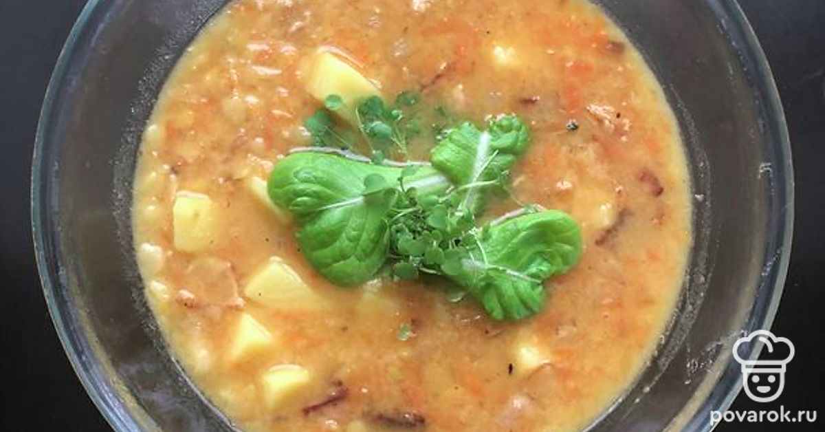 Сытный, ароматный супчик с нотками копченостей порадует вас за обедом.