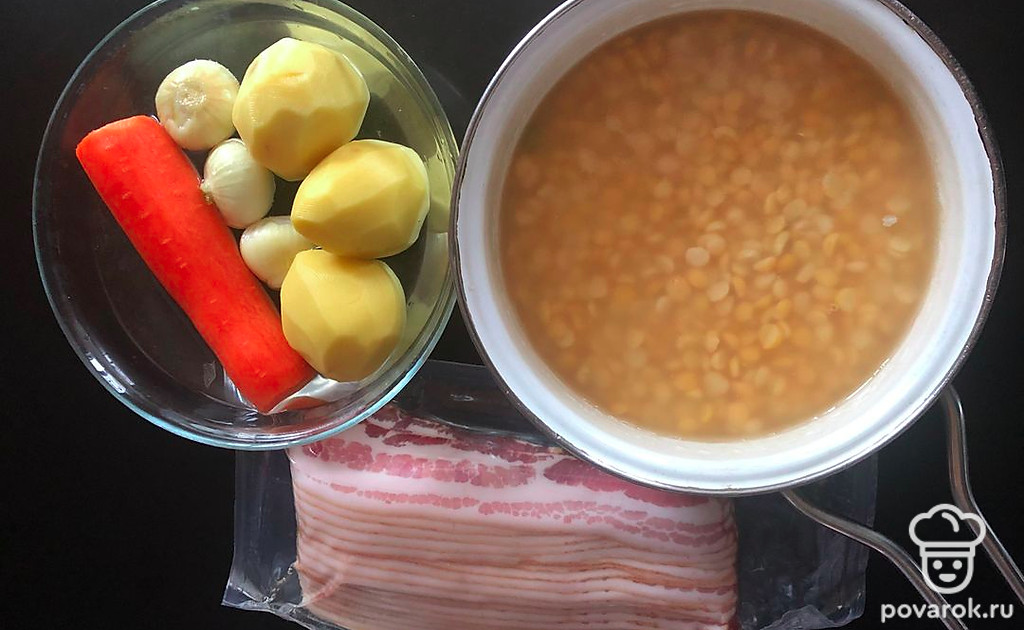 Подготовить все ингредиенты. Горох замочить в воде на 4-5 часов.