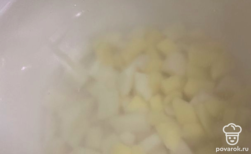Поставьте на огонь воду, добавьте картофель.