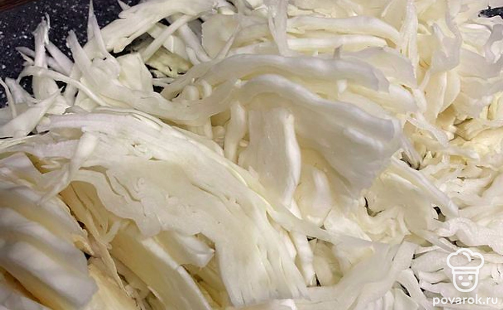 Добавьте в бульон нарезанную капусту.