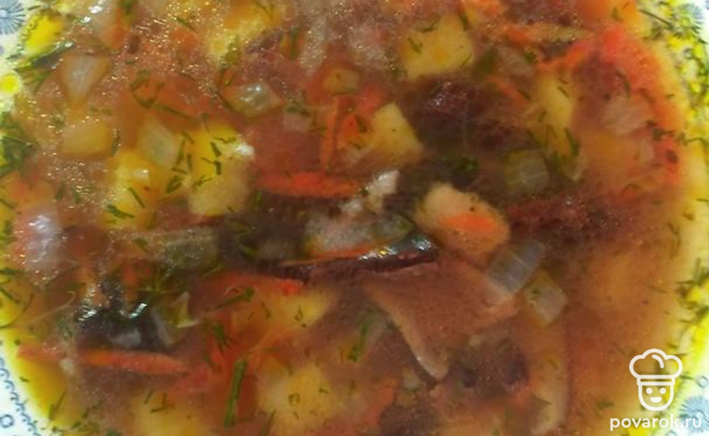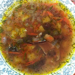 В конце добавить лаврушку и укроп. 5 минут кипения и наш грибной супчик готов. Подавать порционно. Приятного аппетита.