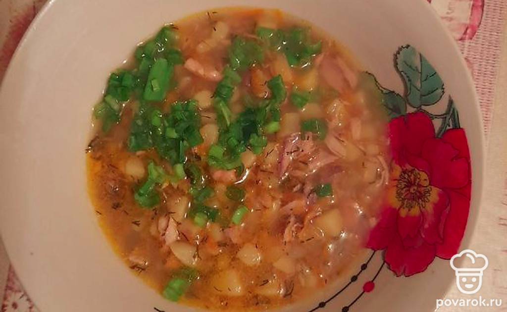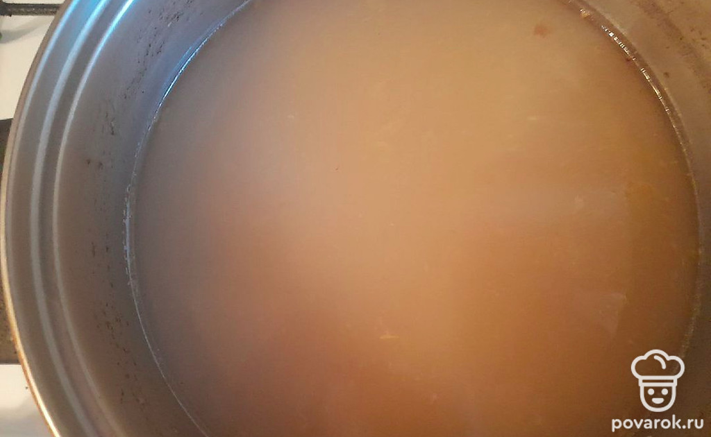 Получившийся бульон снова поставить на огонь, добавить в него картофель и варить около 25 минут.