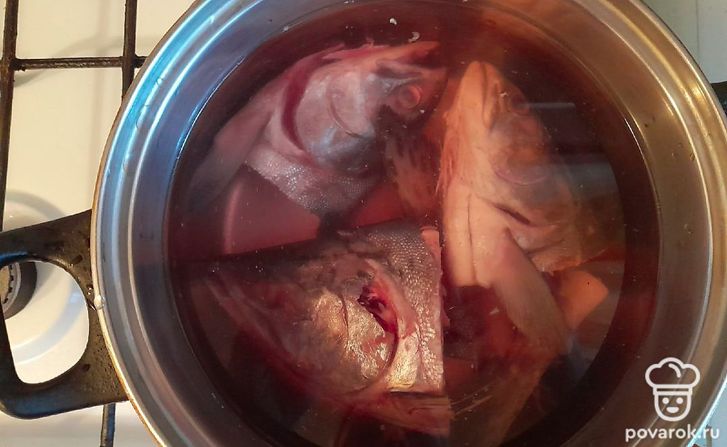В кастрюлю налить 2 литра воды, туда же отправить головы. Варить на среднем огне до закипания. После того, как вода закипит, снять пену шумовкой, посолить, убавить газ и варить 50 минут.