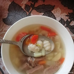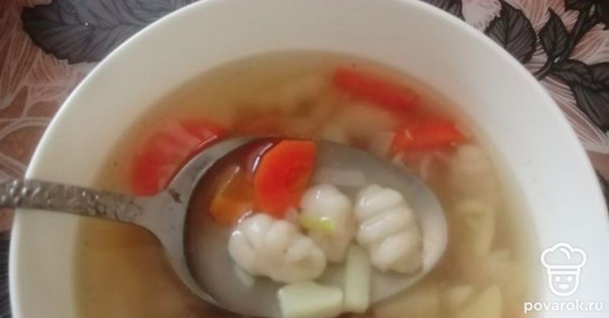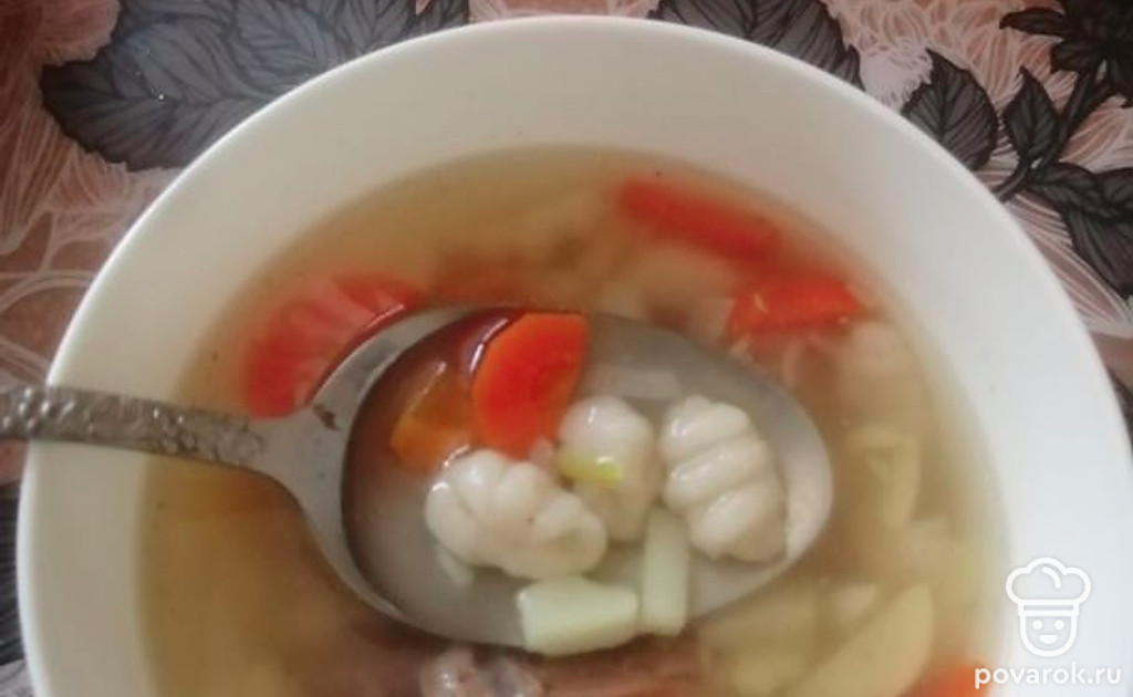 Завитки опустить в бульон с овощами, добавить лавровый лист и любимые специи. Варить минуты три.