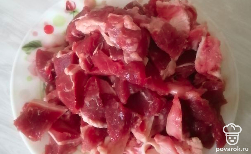 Говядину порезать на кусочки. Из неё сварить бульон. Бульон посолить. Бульон можно сварить из любого мяса по вашему желанию.