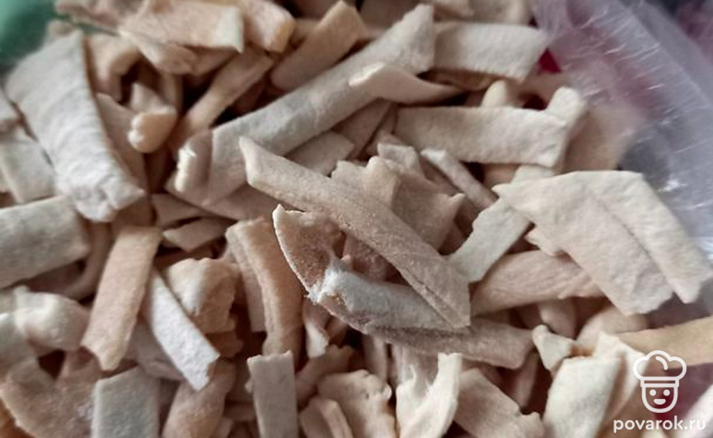 Лагманную лапшу поломать или использовать домашнюю лапшу, выложить в кастрюлю с картошкой.