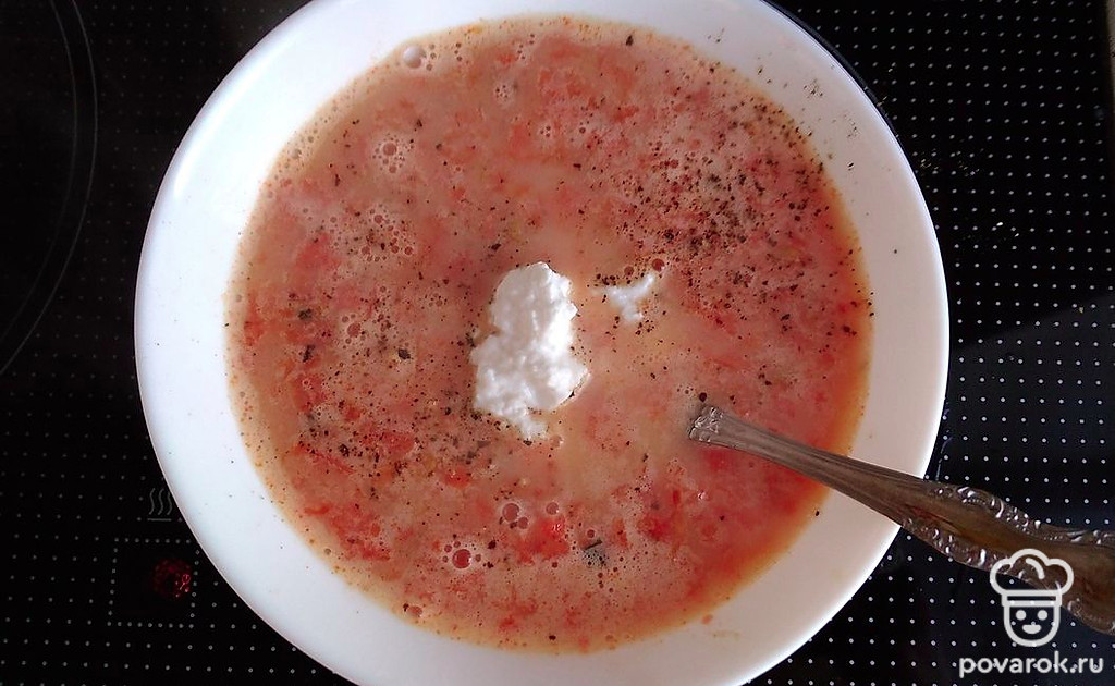 Томатный суп на овсяном молоке с базиликом и рикоттой