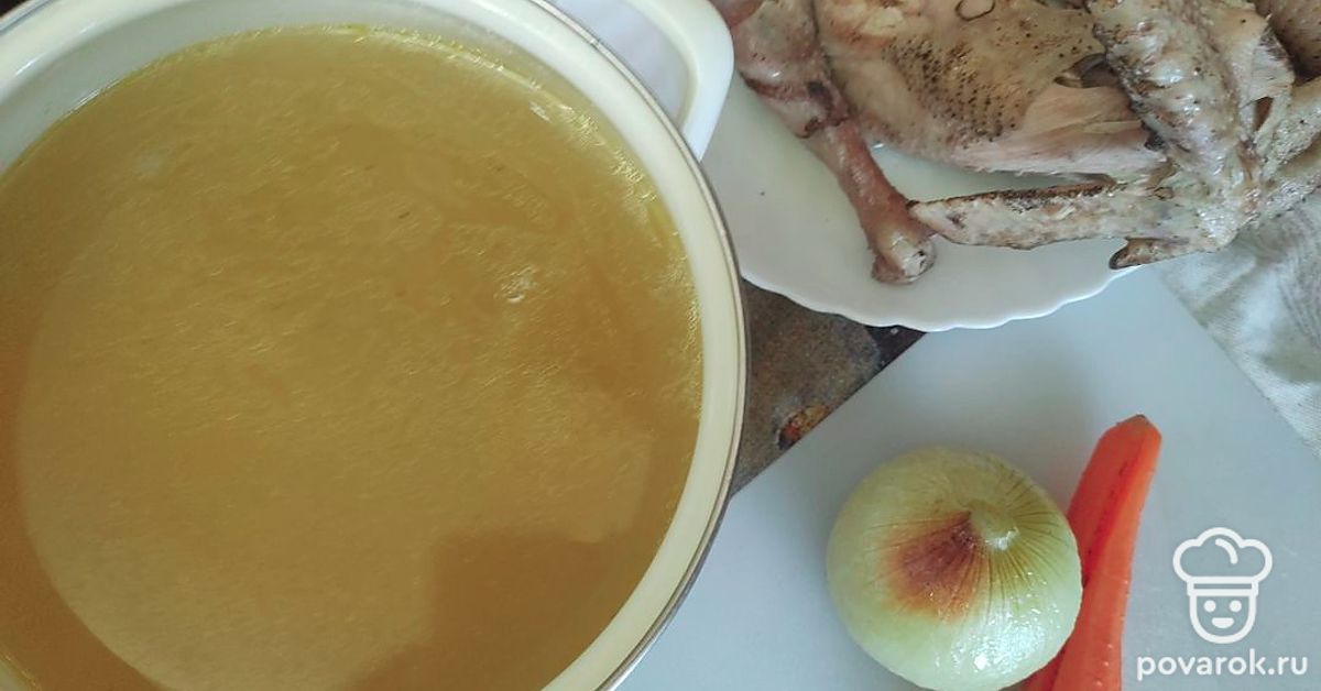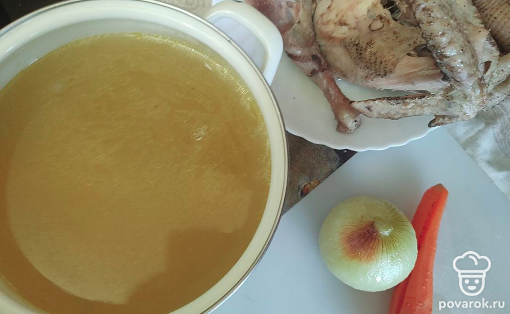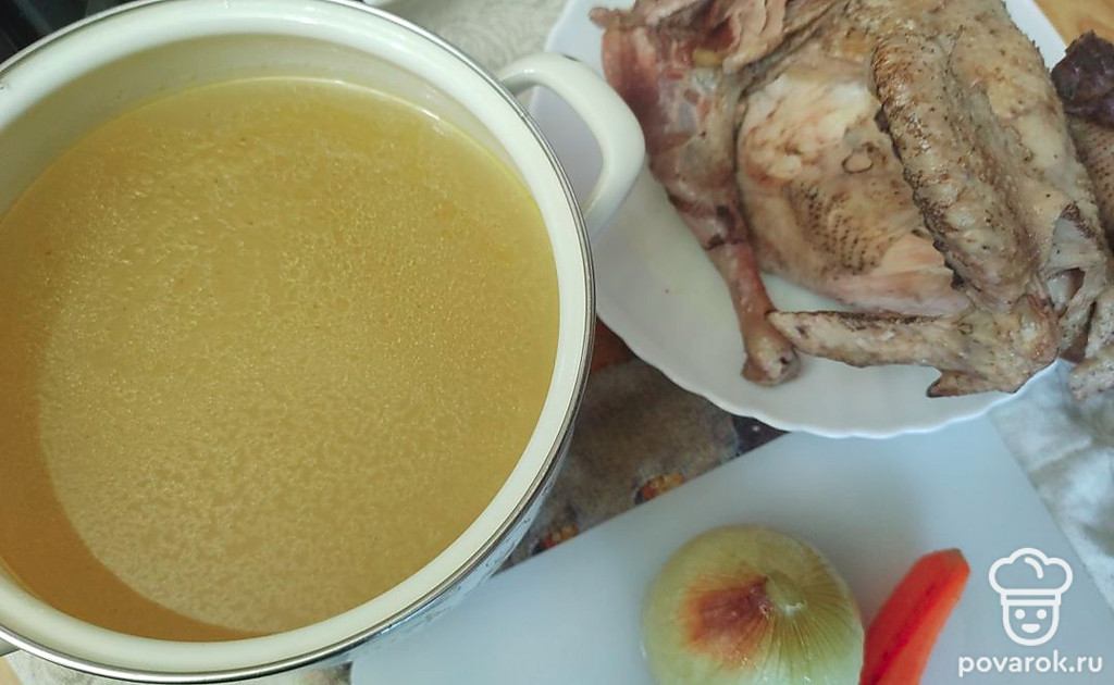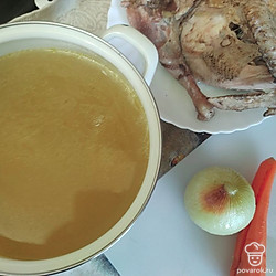 Наваристый бульон из домашнего петуха.