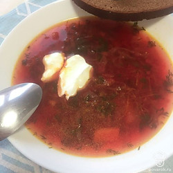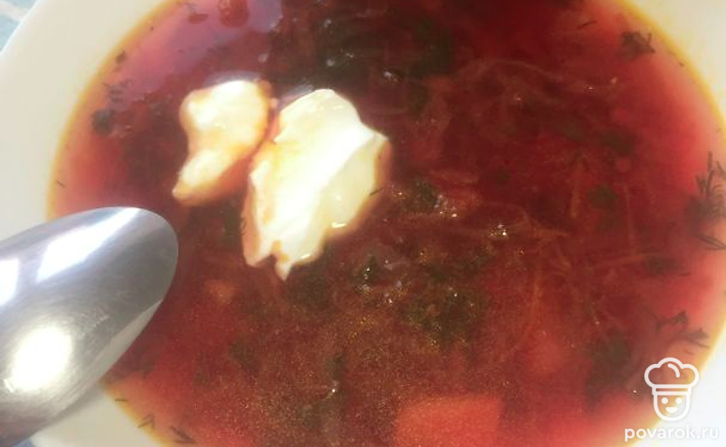 Готовый борщ подаём с чёрным хлебом либо с гренками! Очень вкусно! Приятного аппетита!