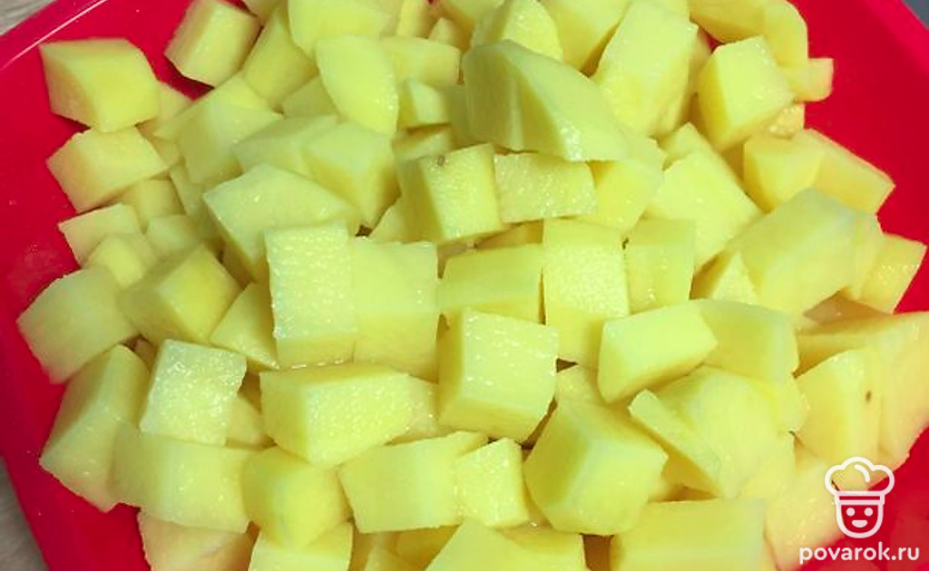 Чистим картофель и режем на кубики, шинкуем капусту.
