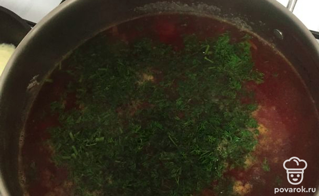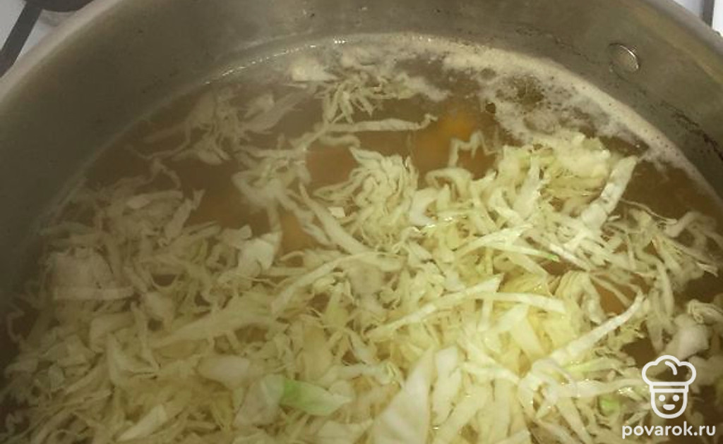 Все это добавляем в готовый бульон, который варился минут 20 после закипания воды. Из него нужно вытащить зелень и овощи.