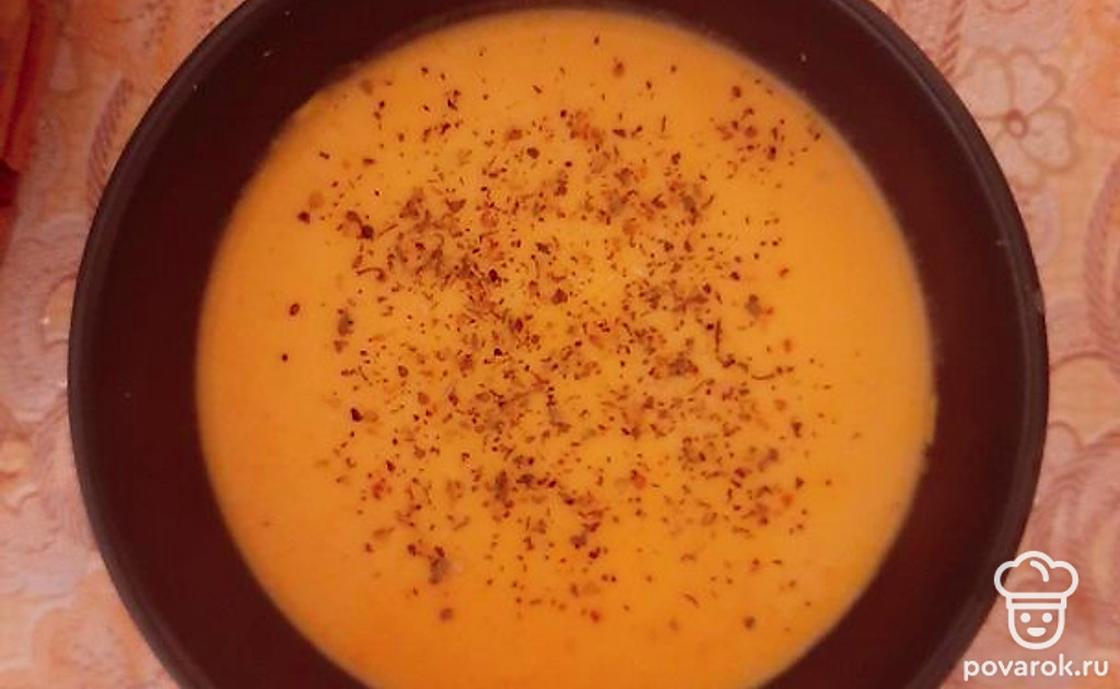 Когда овощи будут готовы, взбейте все погружным блендером.