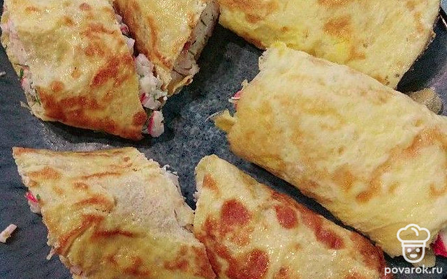 Яичные рулетики с крабовыми палочками