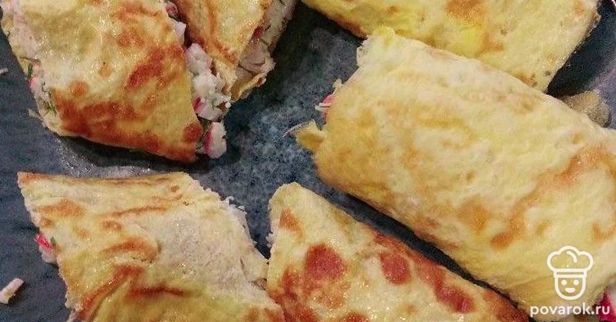 Рулет из лаваша с крабовыми палочками и яйцом