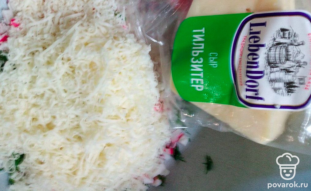 Натрите сыр на мелкой терке.