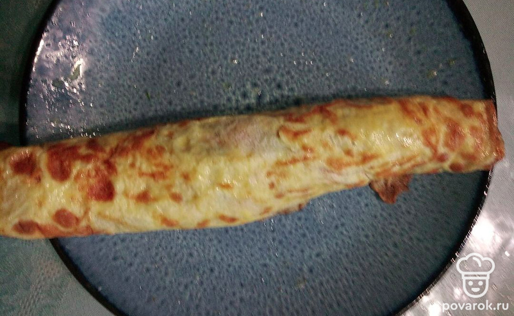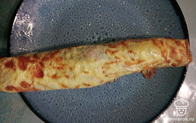 Обжарьте яичную смесь с двух сторон на сковороде. Остудите, выложите начинку.