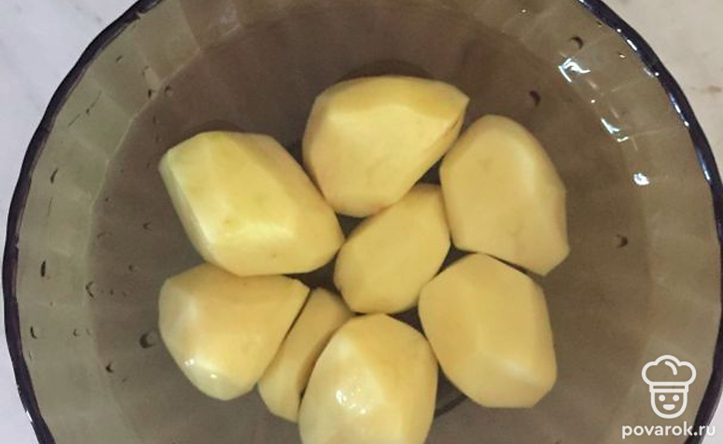 Очистить картофель, выложить в бульон, варить до полной готовности.