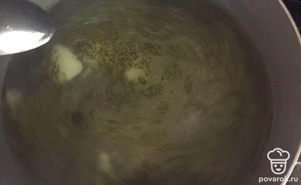 Когда приготовится картофель, закинуть в бульон соль, перец, сушеную мяту. Перемешать.