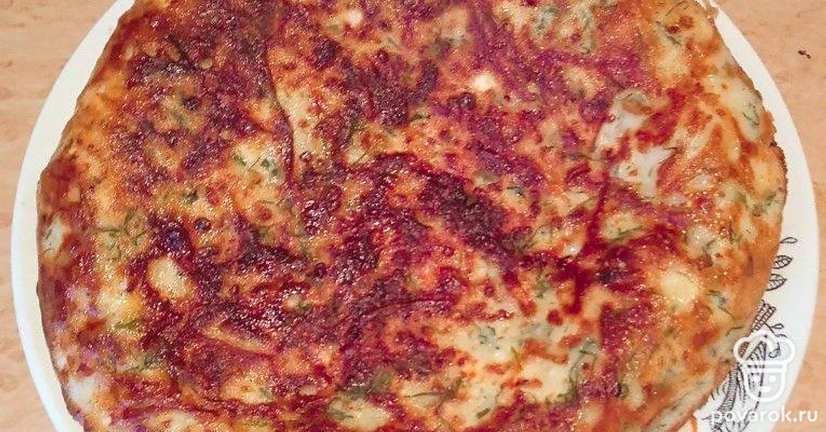 На сковороду с растительным маслом выложите тесто. Жарьте с двух сторон, по 10 минут с каждой, под крышкой.