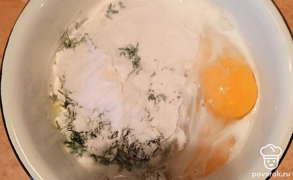 Вбейте яйца. Введите муку и молоко. Посолите, приправьте специями.