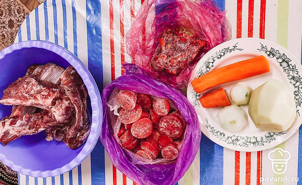 Подготавливаем все ингредиенты. Овощи предварительно можно не размораживать.