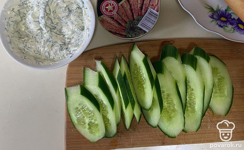 Багет со шпротами и огурцом