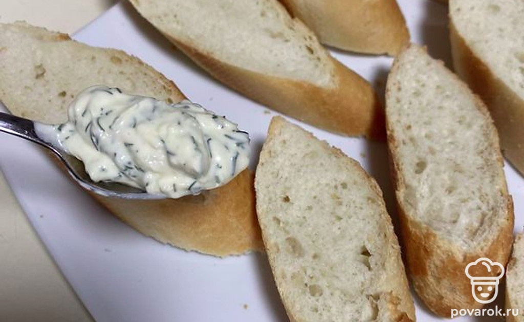 Намажьте на багет соус.