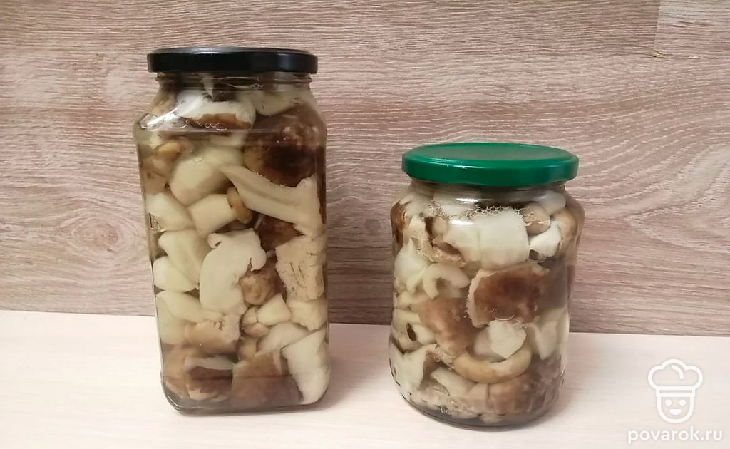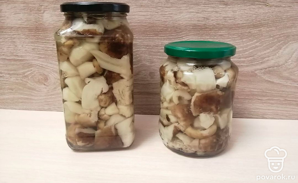 Подготовьте банки и разложите в них грибы. Закройте банки крышками и уберите под плед или покрывало до полного остывания грибов в маринаде.