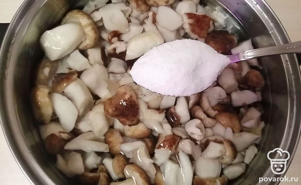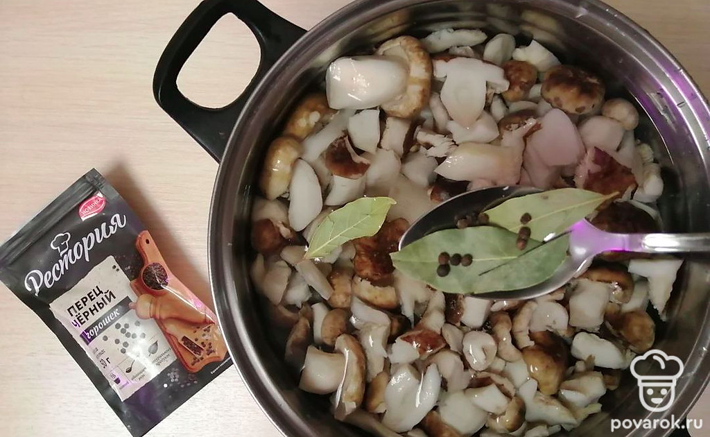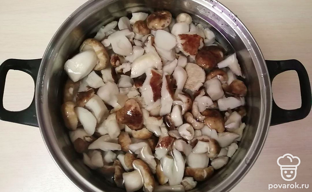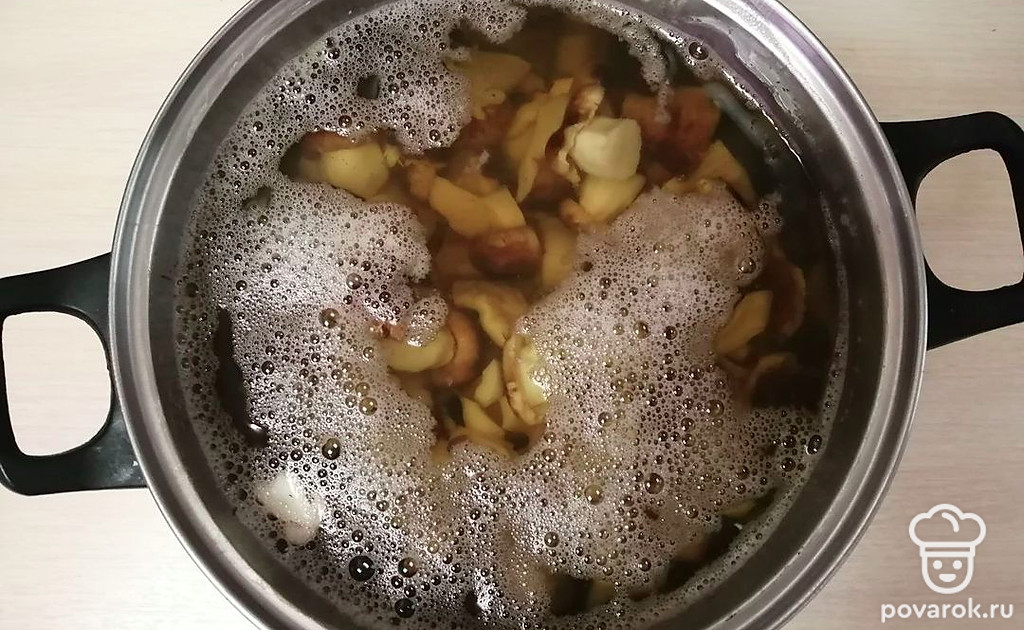 Залейте грибы холодной водой. Варите на среднем огне 30 минут.