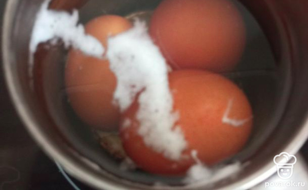 Опустите яйца в воду, варите 3-4 минуты.