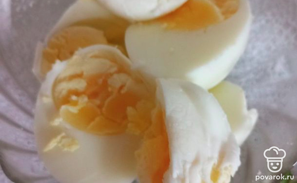 Почистите яйца и разрежьте пополам.
